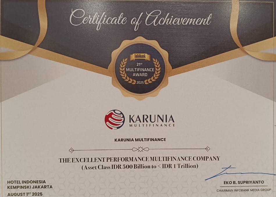 Selama 10 tahun berturut-turut, PT. Karunia Multifinance berhasil meraih penghargaan Multifinance Award dari Infobank