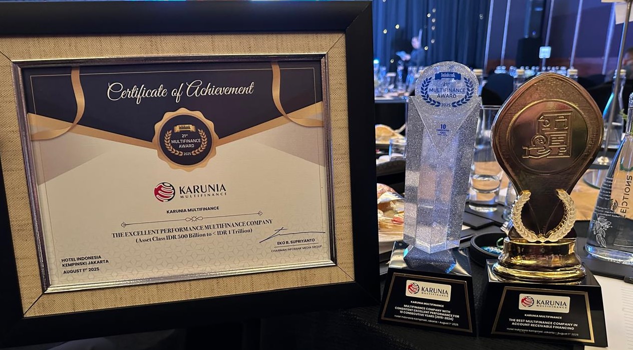 PT. Karunia Multifinance dengan bangga mengumumkan telah menerima dua penghargaan prestisius dalam ajang 21st Infobank Multifinance Awards 2025, yang diselenggarakan pada tanggal 1 Agustus 2025 bertempat di Hotel Indonesia Kempinski, Jakarta